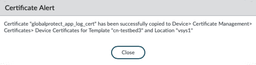 - (Optional) In next-generation firewall deployments, copy the globalprotect_app_log_cert certificate to another template and location.Select Copy Certificate for GlobalProtect App Log Collection and Autonomous DEM.
