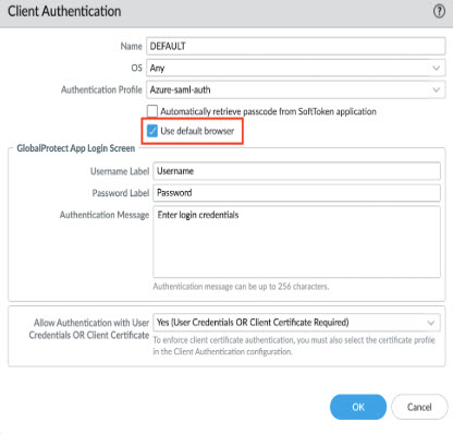 Starting with PAN-OS version 11.1.0, the browser selection for SAML authentication is