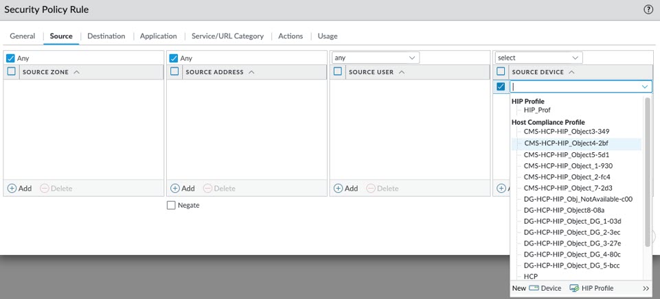 You can add the HCP to a security policy and create the HCP-enabled security rules on
