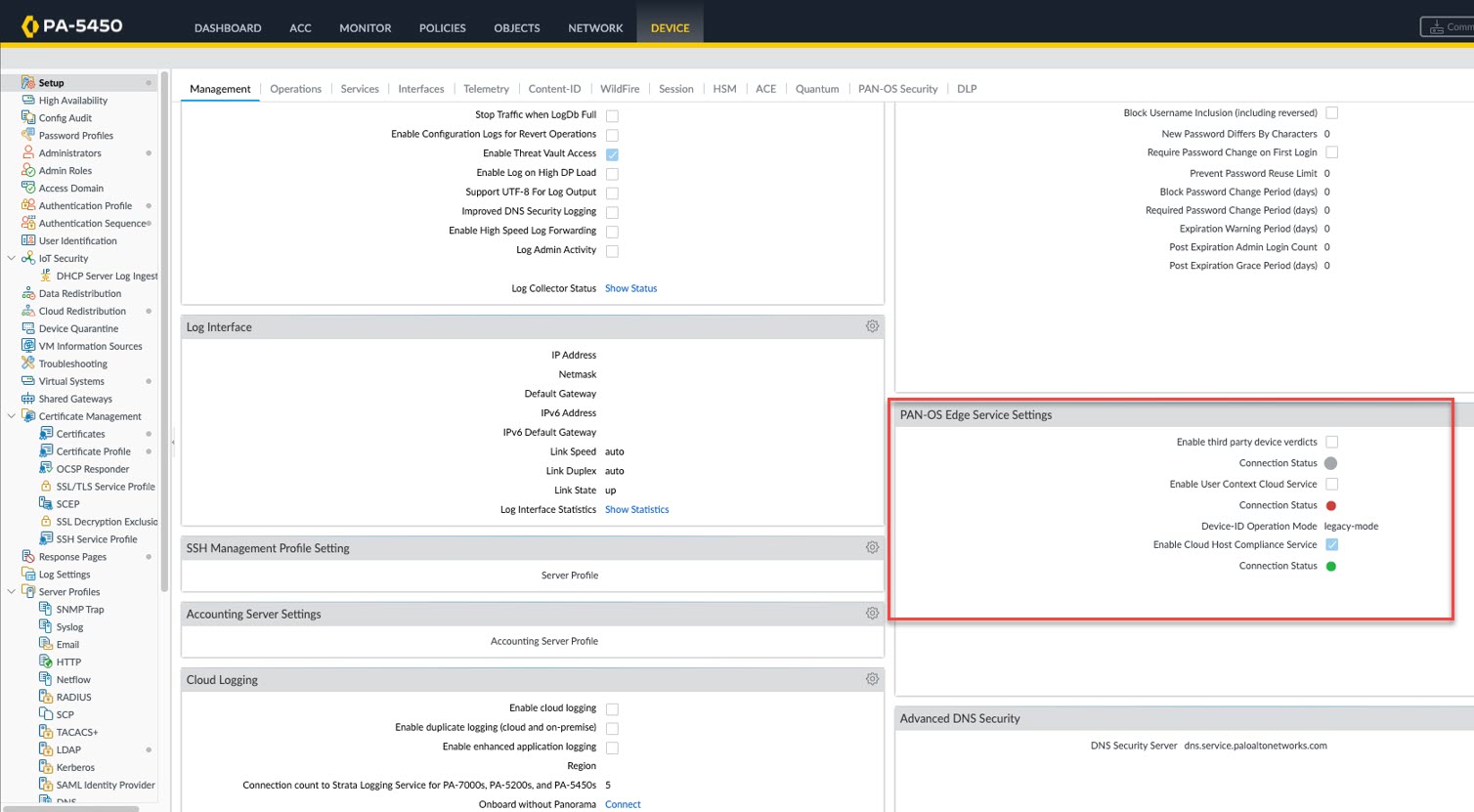 1. On the firewall(s) hosting GlobalProtect gateway(s), select DeviceSetupManagementPAN-OS Edge Services Settings.