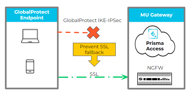 GlobalProtect fallback to SSL tunnel in case IPSec tunnel fails. If IPSec is not