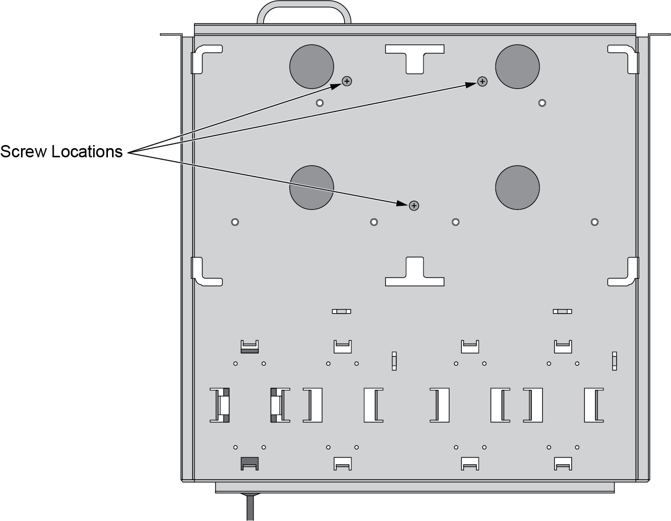 5. Secure the device in place using three of the provided #6-32 x 3/16” Long Flathead screws.