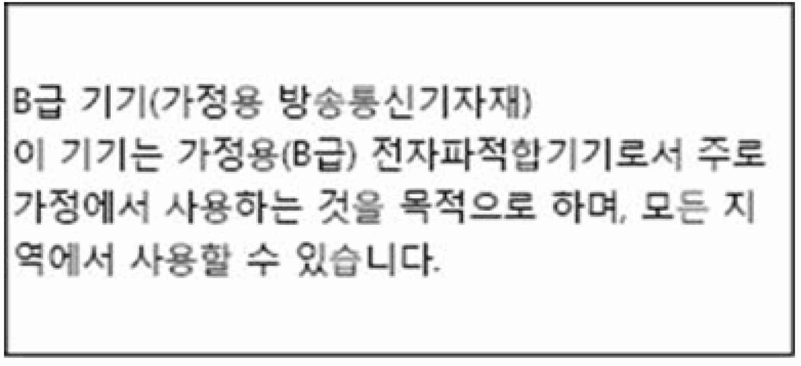 Translation: This is a Class B product. In a domestic environment this product may cause radio interference, in which case the user may be required to take corrective actions. - KCC