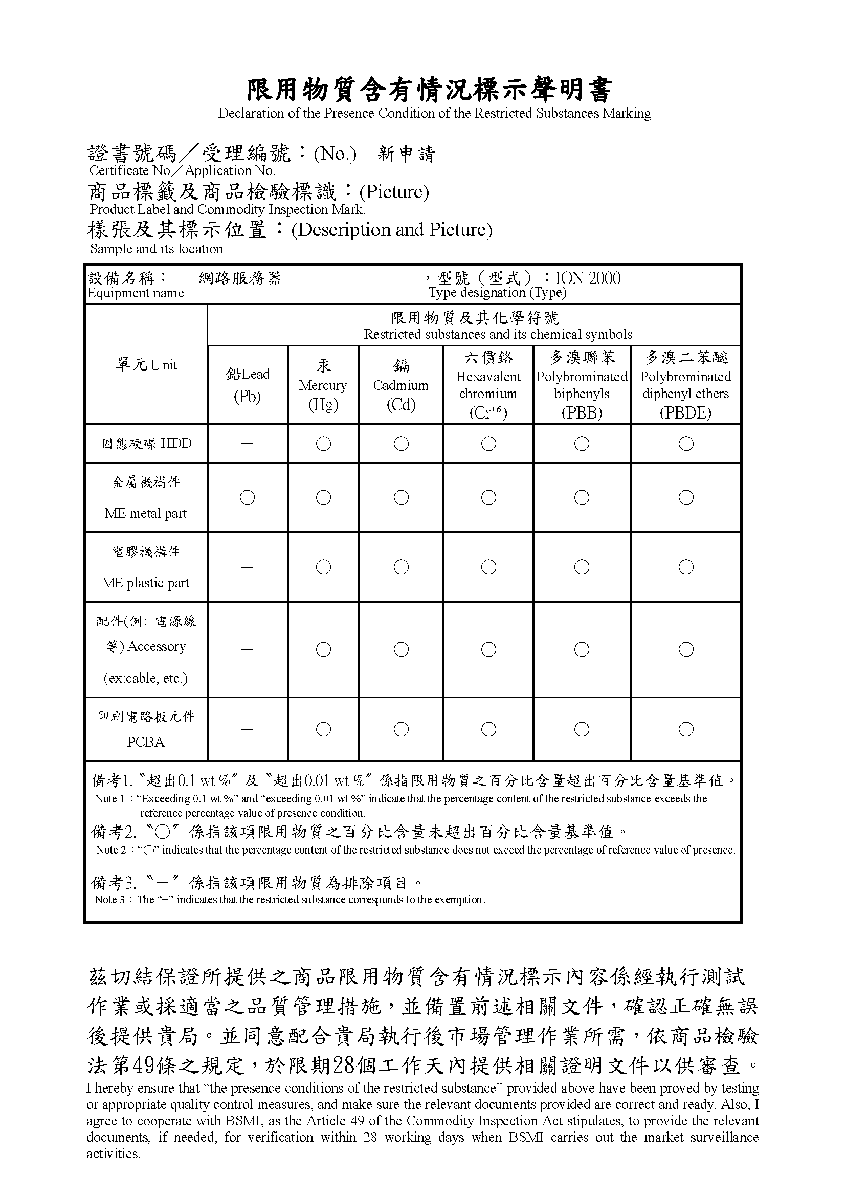 - Declaration of the Presence Condition of the Restricted Substances Marking.