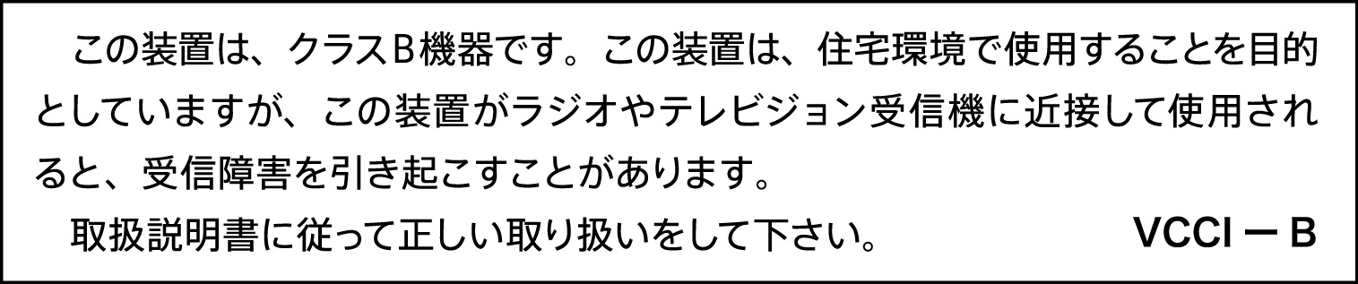 Technology Equipment (VCCI), which governs radio frequency emissions