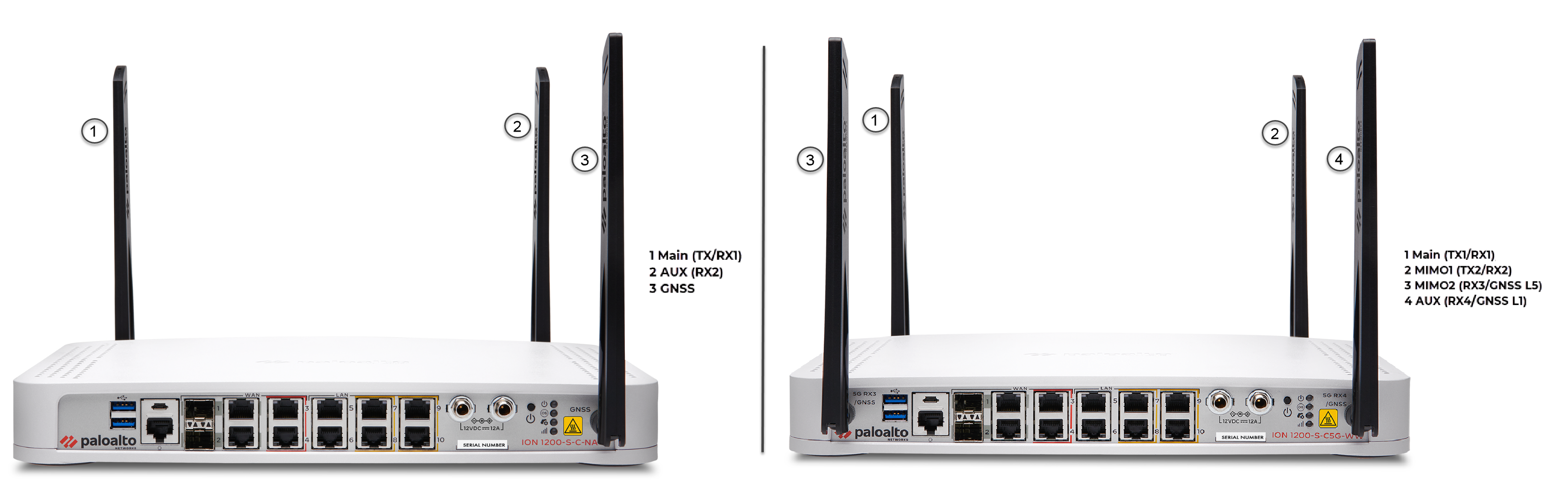 ION 1200-S-C5G-WW devices support multi-band antennas which can