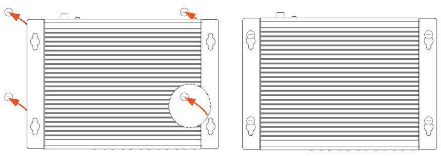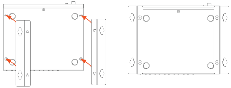 Turn the ION device upside down and locate the four (4) screw holes on each corner of the device.Place the brackets on each side of the device, making sure to align the screw holes on the bracket and the device.Insert the screws to secure the brackets.
