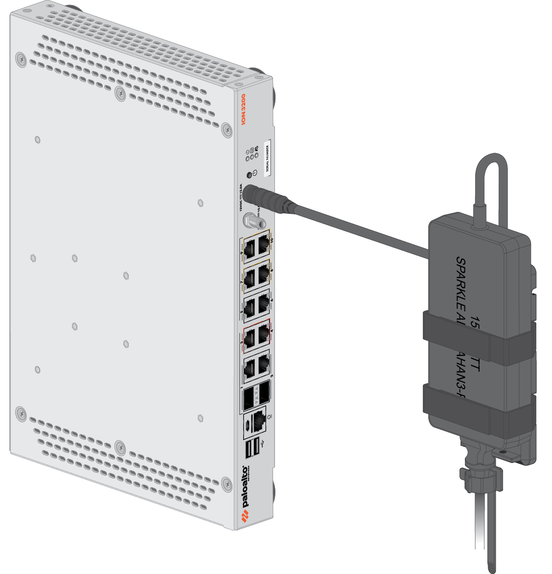The following image shows a completed installation for an ION 3200 with a single power adapter.
