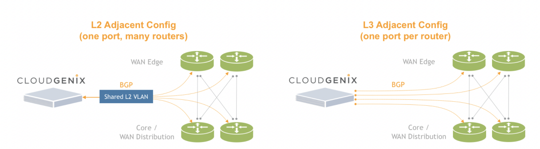 The Prisma SD-WAN ION 9000 uses the peering ports to communicate with WAN edge or core or WAN distribution routers via BGP. The routers may be connected using one physical port per router or multiple routers can share a single port by using a shared Layer 2 VLAN.