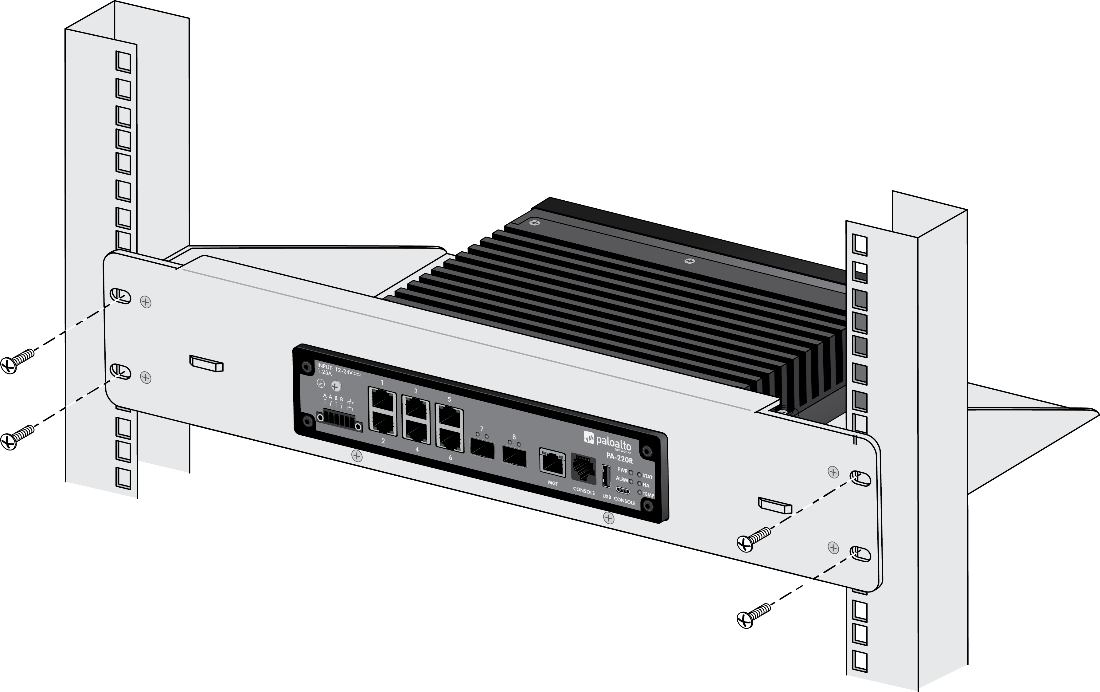 The following procedure describes how to install the PA-220R firewall in a two-post or four-post equipment rack using the 19-inch rack-mount kit.