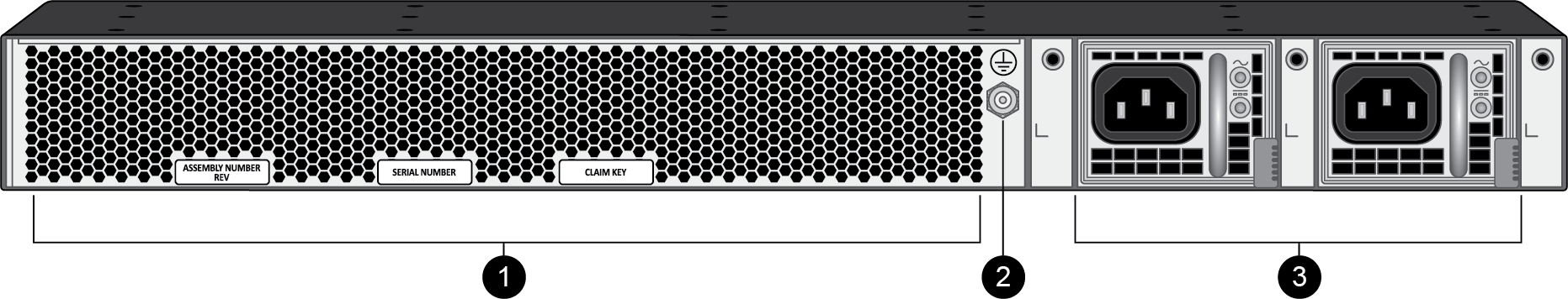 Use the power supply inputs to connect AC or DC power to the firewall. The second power supply is for redundancy. When facing the back of the firewall, PS1 is on the right and PS2 is on the left.
