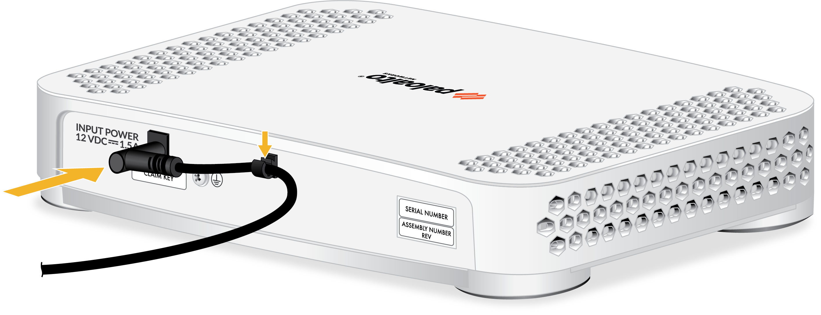 Ensure the power adapter itself is appropriately positioned (see Install the PA-400 Series Firewall).Plug the AC connector from the power adapter into your AC power source. After power is connected, the firewall powers on as indicated by the green power LED next to the PWR port. The front PWR LED shows green when a functioning power adapter is connected.Before powering on the firewall, ensure that you have connected your Ethernet cables in accordance to the mode you wish to boot the firewall in (standard mode or Zero Touch Provisioning mode) as specified in Set Up a Connection to the Firewall.