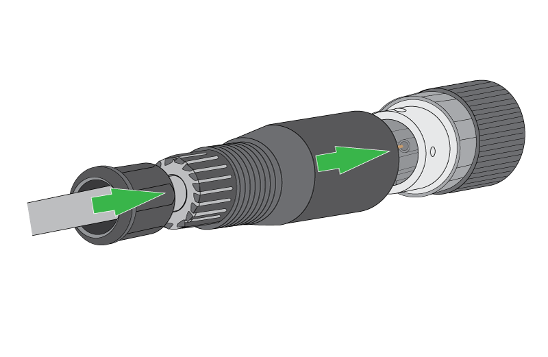 - Remove the power cable jacket and strip the three wires (two conductors and one ground cable).Assemble the connector using the provided instructions.