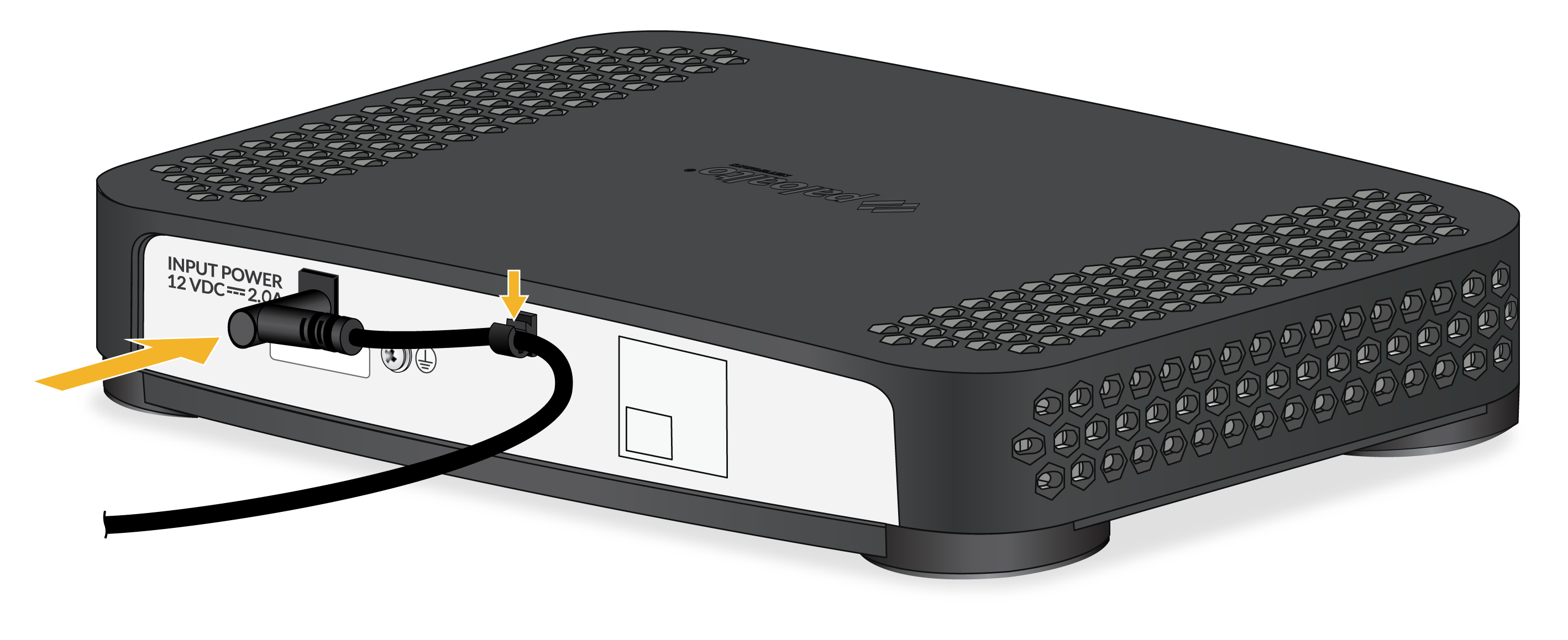 PA-545-POE and PA-555-POEPlug the DC connector from the power adapter into the port on the firewall and secure the input to the firewall.