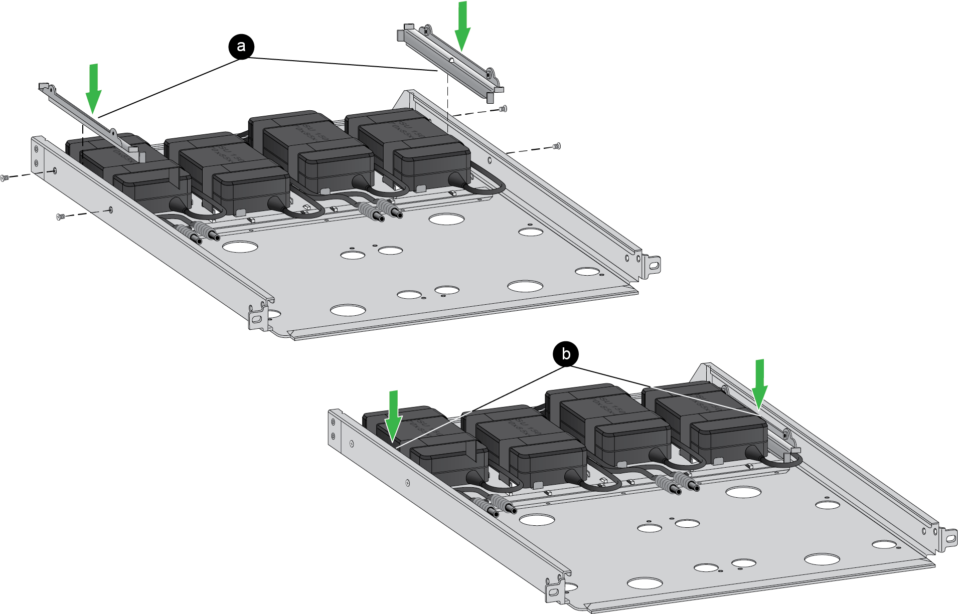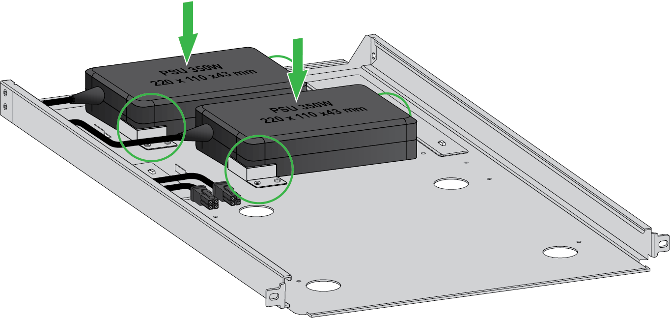 - Secure the power adapter(s) to the mounting tray.PAN-1RU-4POST-RACK-10