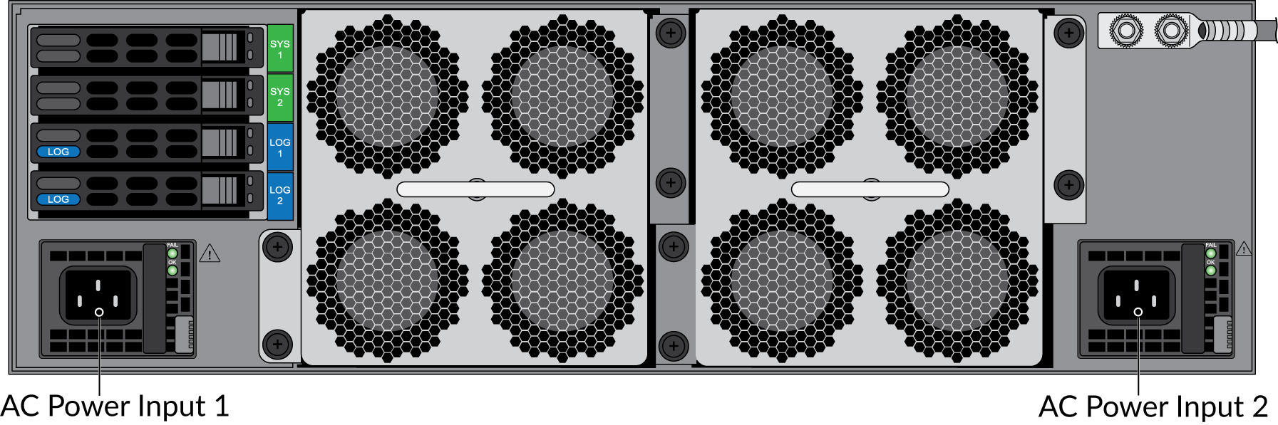 AC power to a PA-5200 Series firewall with AC power supplies.