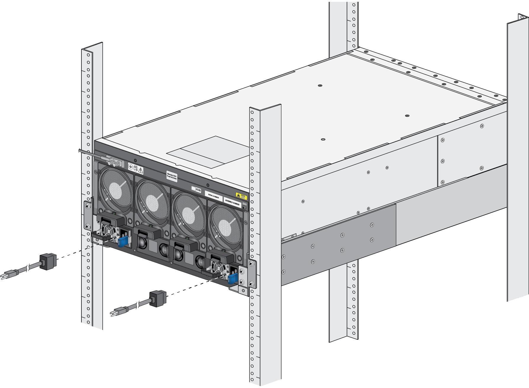 - Secure the power cords to the power inlets using the power cord retainer clips.