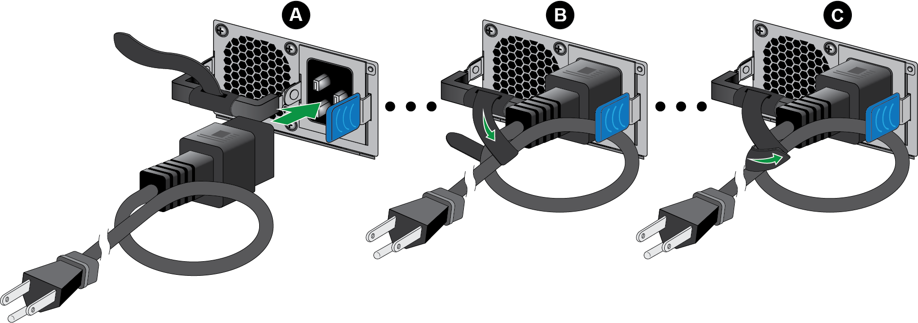 The AC and DC power supplies support two ranges of voltages: low line (90V to 140V)
