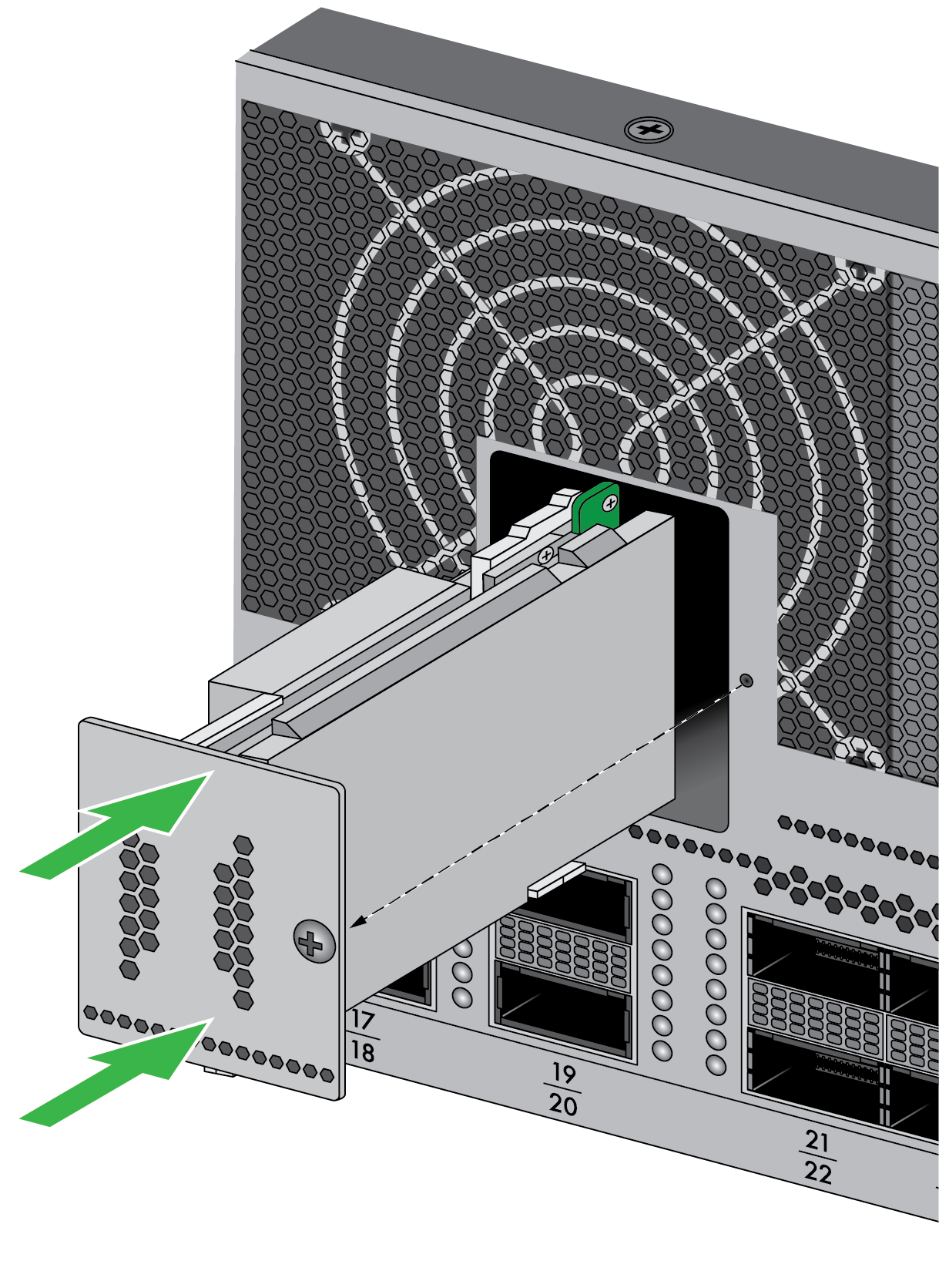 Remove the replacement drive from the packaging, determine the drive model, and place it on an antistatic surface.Slide the replacement SSD module onto the rails and gently push it into the firewall. Re-fasten the captive screw until the module is secure in the appliance.