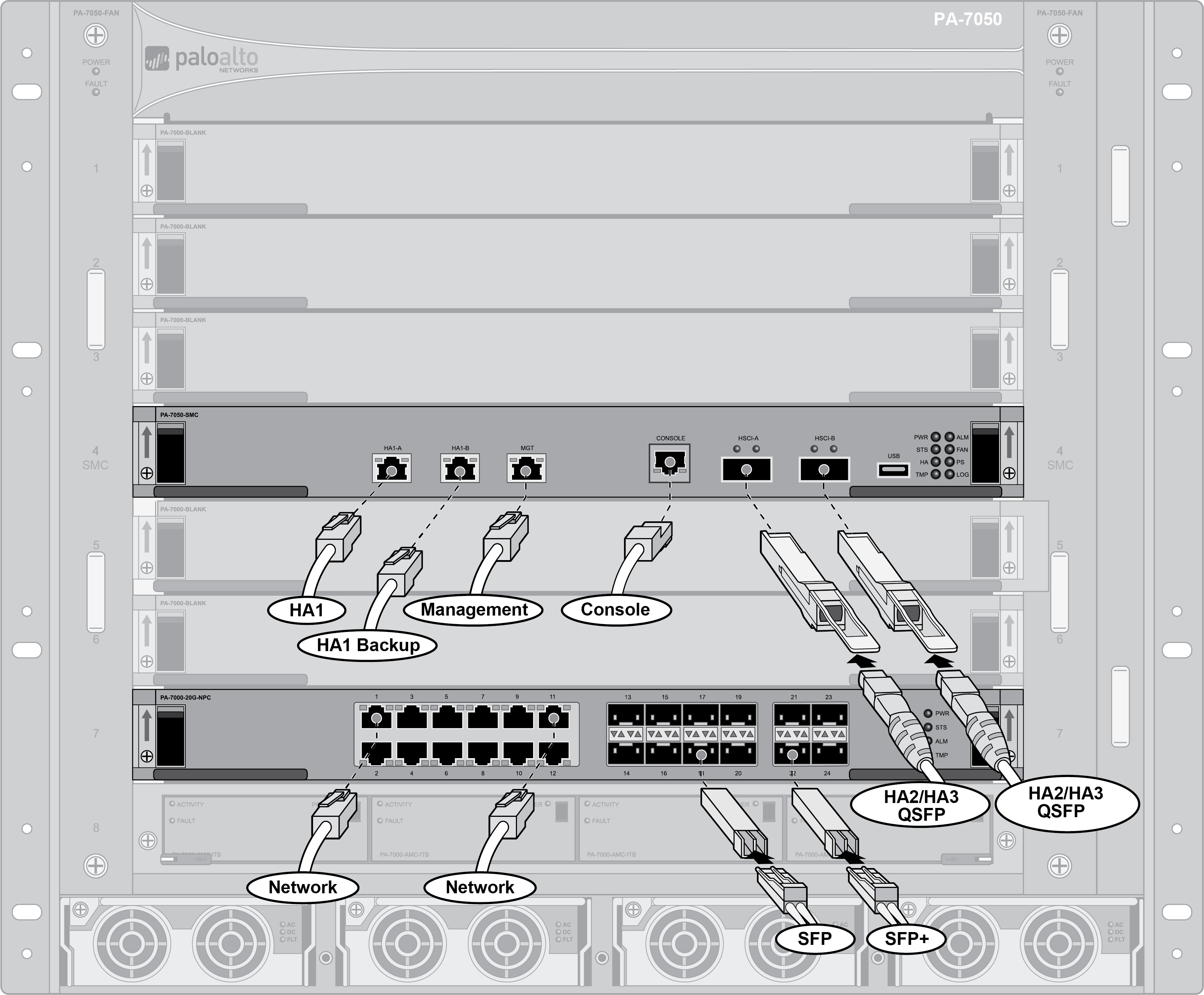If you install two matching firewalls in a high availability configuration, you will also connect HA cables between the two chassis (see HA Links and Backup Links).