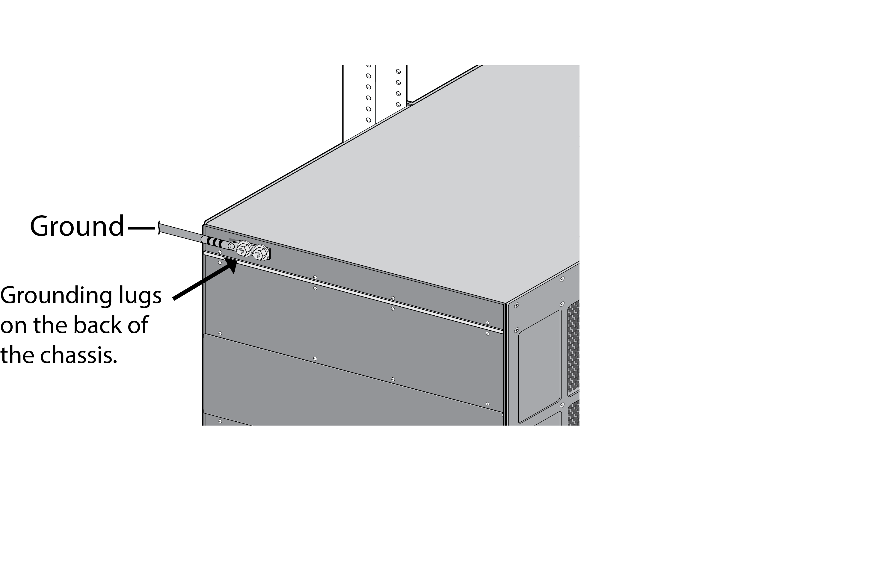 - Read Product Safety Warnings.Put the provided ESD wrist strap on your wrist ensuring that the metal contact is touching your skin. Then attach (snap) one end of the ground cable to the wrist strap and remove the alligator clip from the banana clip on the other end of the ESD grounding cable. Plug the banana clip end into one of the ESD ports located on the front of the chassis before handling ESD sensitive hardware. For details on the ESD port location, see PA-7050 Front Panel (AC).Remove the two nuts and star washers from the ground studs located on the back of the chassis on the upper left side.Crimp a 6-AWG wire to the provided grounding lug and connect the other end to your earth ground point.Connect the two-post lug connector to the two-post studs on the chassis using the provided star washers and nuts and then torque the nuts to 50 in-lbs. Be careful not to strip the nuts and lug studs.