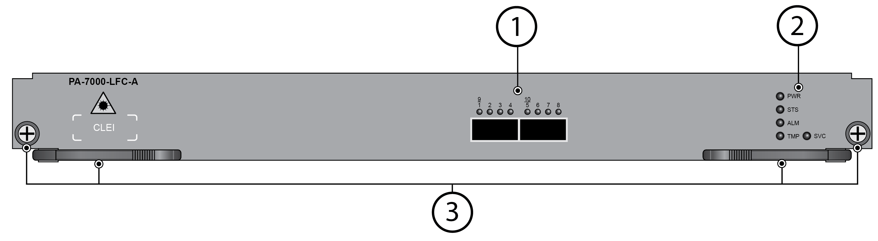 Screws and levers used to install and remove the LFC. There are thumb screws and double lever release latches on each side of the card. Each inner ever contains a micro-switch and when you simultaneously pull both inner levers outward to release the outer ejector