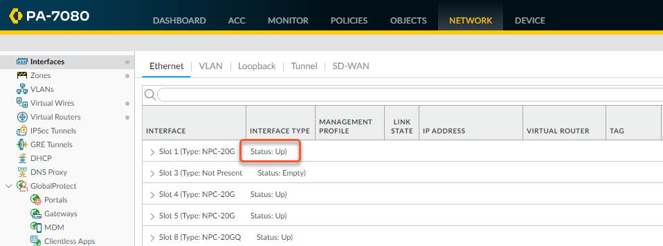 - Check the status of the NPC that is having a problem. You can do this from the web interface or from the CLI. In the web interface, navigate to NetworkInterfaces to view status of each NPC slot.