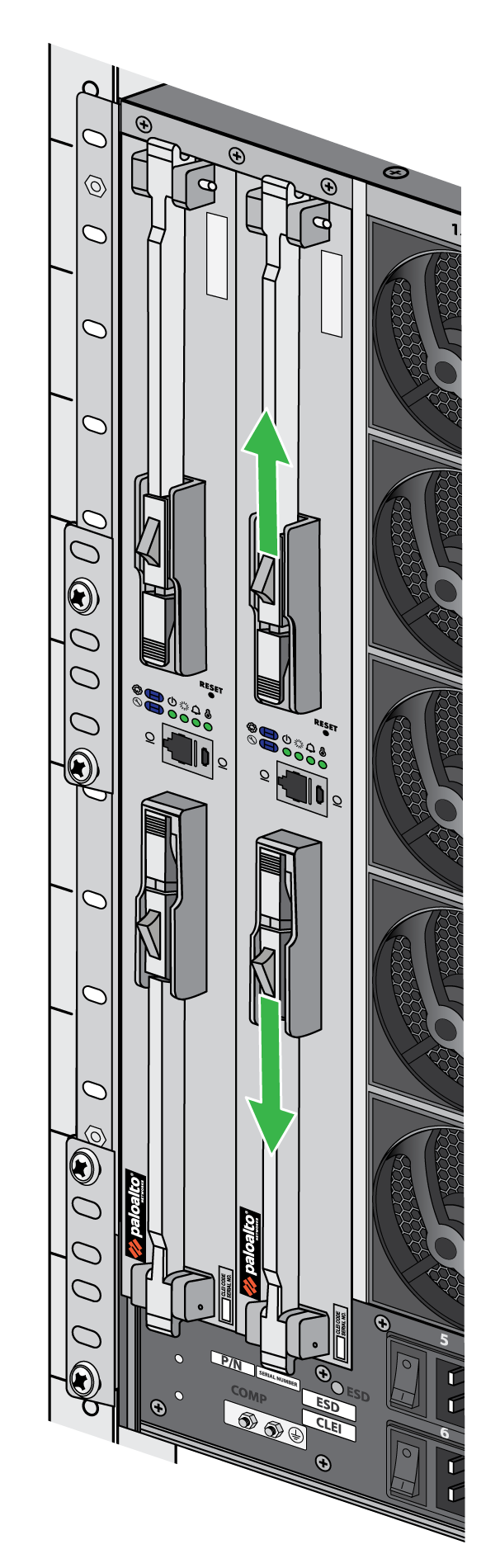 - (MPC, NPC, and DPC) Push the ejector tabs on the card towards the center, prompting a click. This will cause ejector handles on the front of the card to rotate outward and unlock the card.