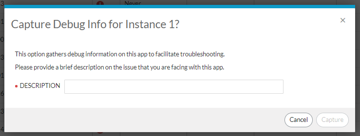 If you're having trouble with a specific app instance, you can capture debug information
