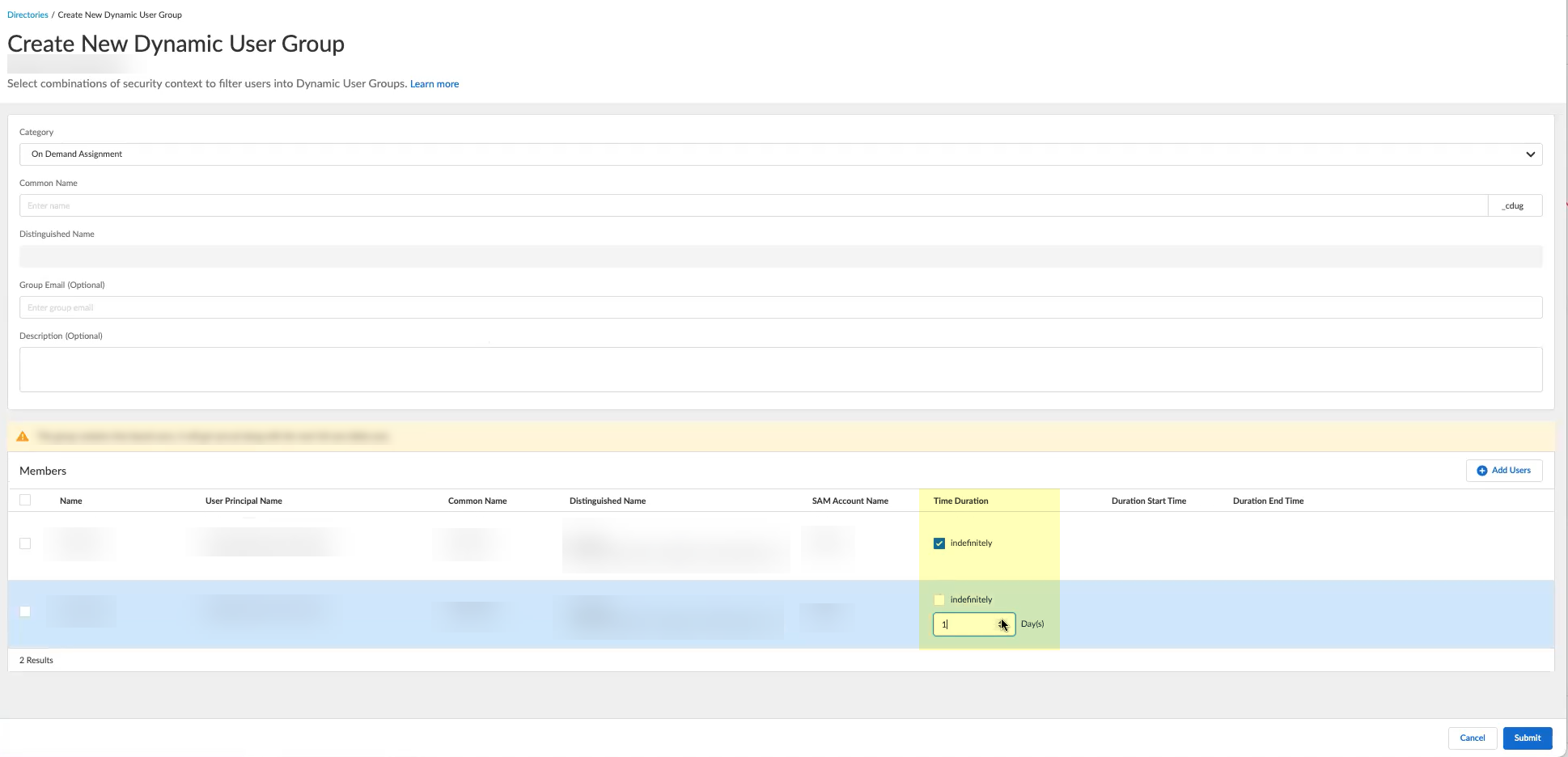 Click Submit to create the Cloud Dynamic User