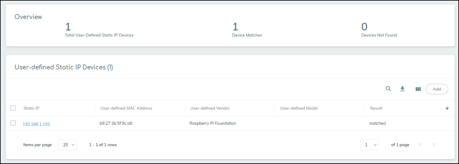 of static IP devices (see Upload a List of Static IP Devices), you can