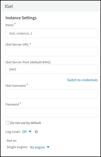 Cloud-based Cortex XSOAR Run on Single engine: When using a cloud-based Cortex XSOAR instance and an on-premises IGEL UMS server, choose the Cortex XSOAR engine that you want to communicate with the IGEL UMS server.