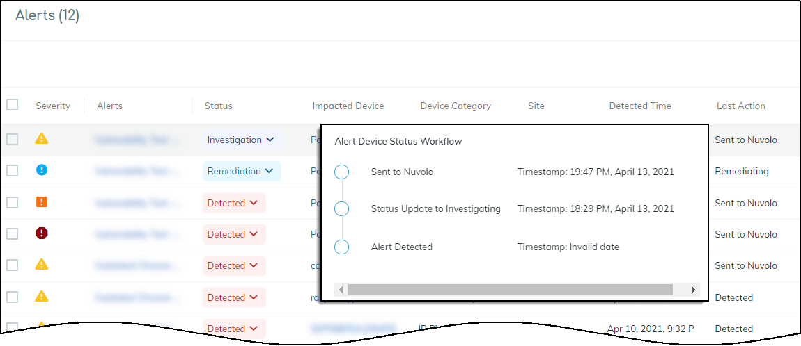 - Log in to the Device Security portal and send a Security alert to Nuvolo.