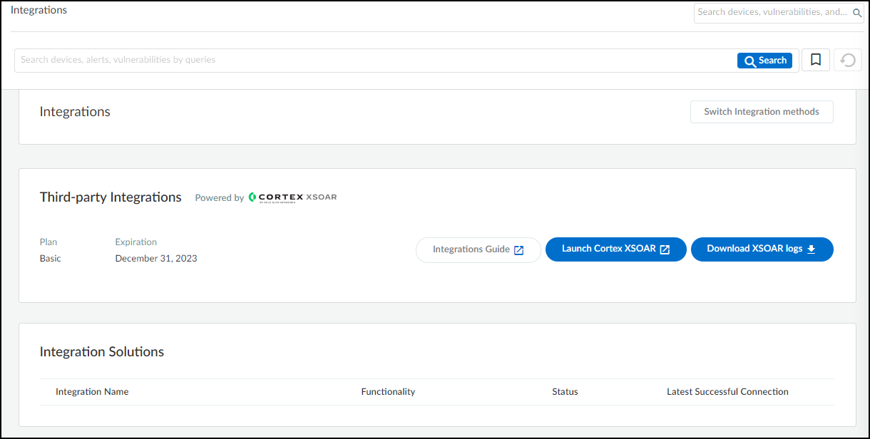 - Device Security uses Cortex XSOAR to integrate with ServiceNow, and the settings you must configure to integrate with it are in the XSOAR interface. To access these settings, click Launch Cortex XSOAR.The Cortex XSOAR interface opens in a new browser window.