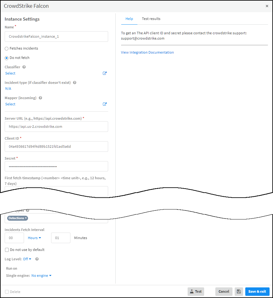 1. Log in to Device Security and then access CrowdStrike integration settings in Cortex XSOAR.