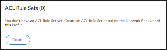 - Click Create in the ACL Rule Sets widget.The Recommended ACL Rule Set appears. This is the default rule set and is populated with rules based on traffic that Device Security has observed from the various members belonging to this profile.