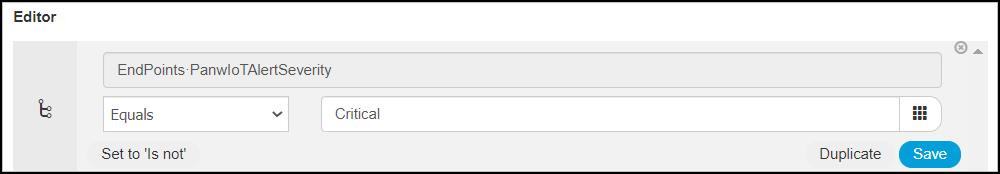 Click to add an attribute: EndpointsPanwIoTAlertSeverity