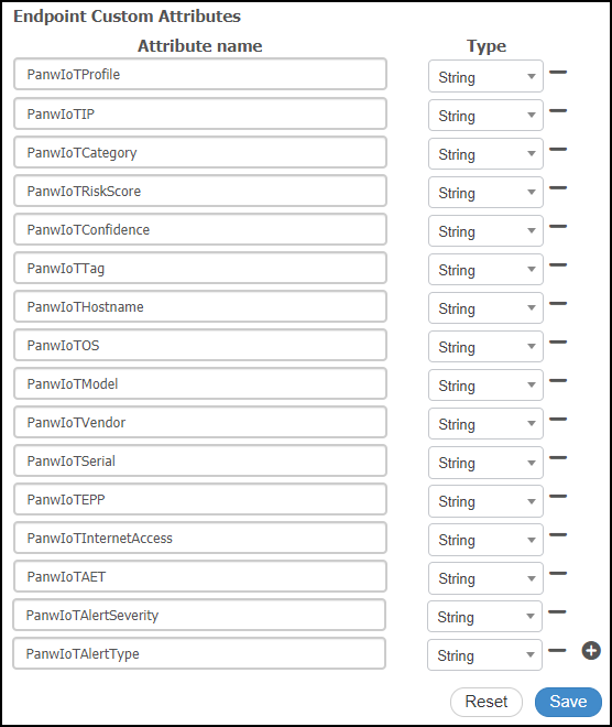 • Add these custom endpoint attributes for Device Security alerts: PanwIoTAlertSeverity and PanwIoTAlertType