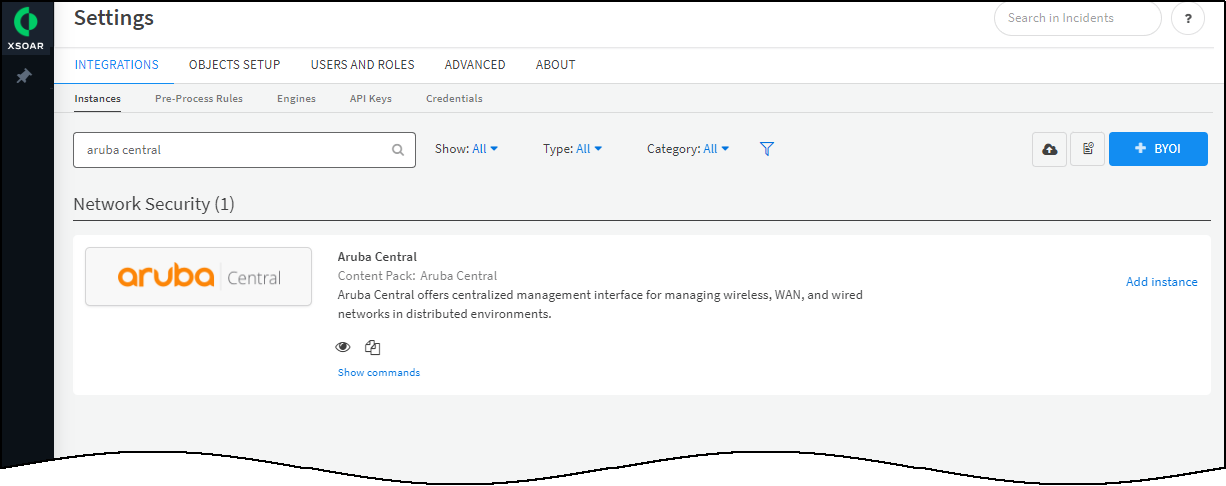 - Device Security uses Cortex XSOAR to integrate with Aruba Central, and the settings you must configure to integrate with it are in the XSOAR interface. To access these settings, click Launch Cortex XSOAR.The Cortex XSOAR interface opens in a new browser window.