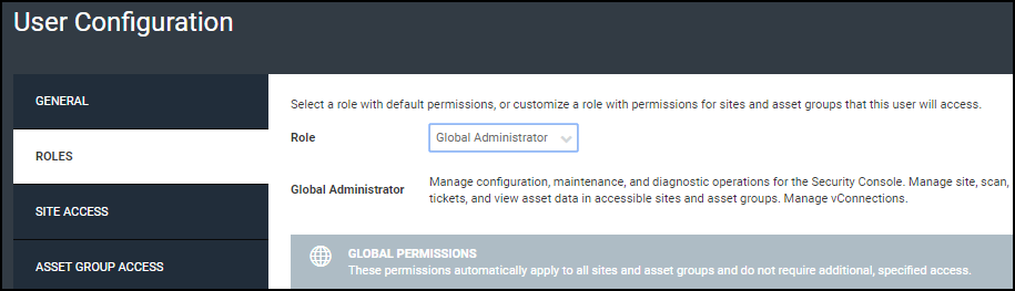 - Click Roles and choose Global Administrator from the Role drop-down list.