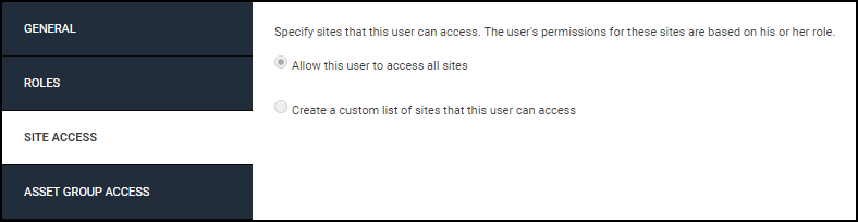 - Click Site Access and confirm that Allow this user to access all sites is selected.