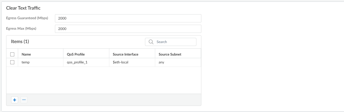 - Set the Egress Guaranteed and Egress Max bandwidths for clear text traffic.