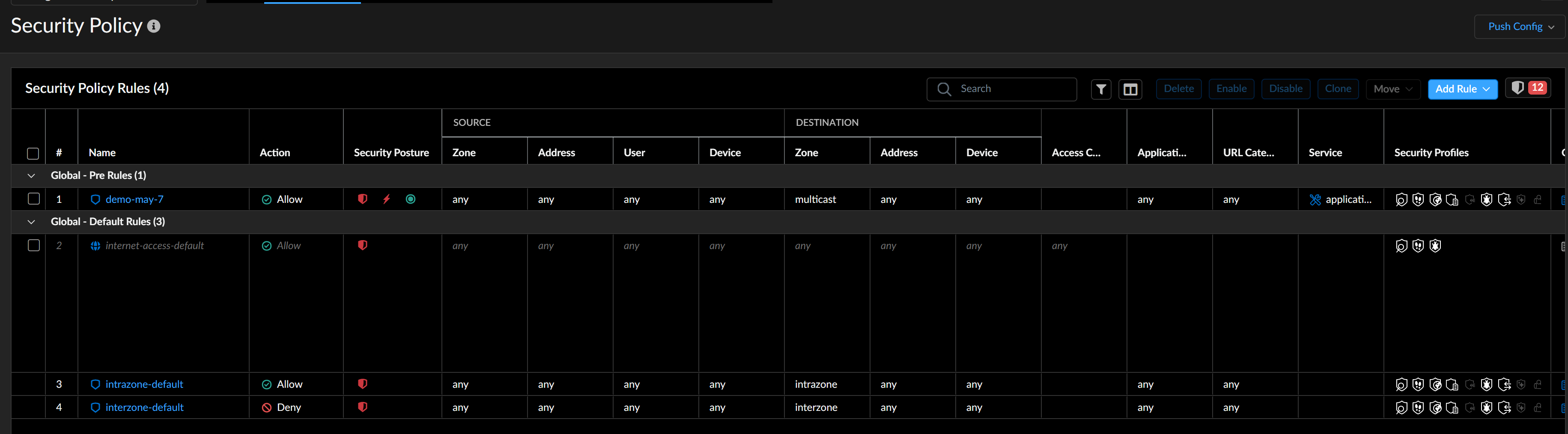9. Select Save to save the security rule, then Push Config to your devices.