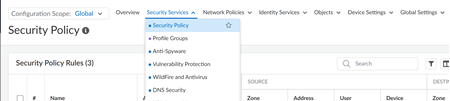 • Go to GlobalSecurity Policy