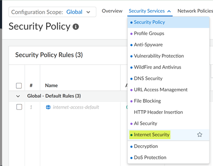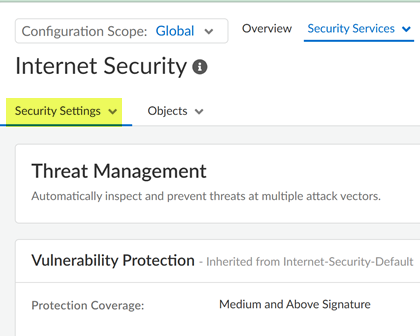 ConfigurationNGFW and Prisma AccessSecurity ServicesInternet SecuritySecurity Settings