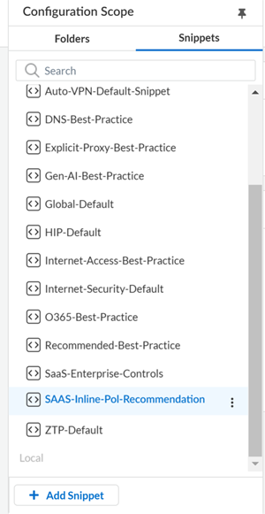 ConfigurationNGFW and Prisma AccessConfiguration ScopeSnippetsSAAS-Inline-Pol-Recommendation