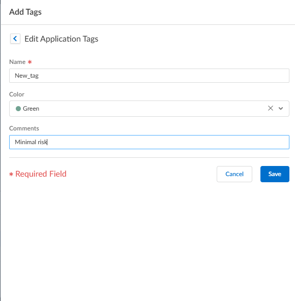 3. (Optional) You can also Create New tags if suitable tags are not available. For each new tag, you must provide a Name and Color; you can optionally supply Comments to help identify the tag. Save after you have added all necessary tags.