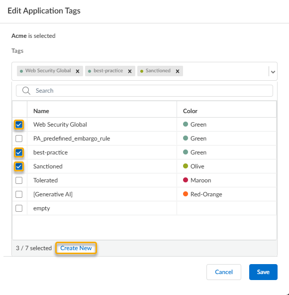3. From the Tags drop down, select the tags that are appropriate for the custom application. Custom tags that you have created can also be applied, if available.