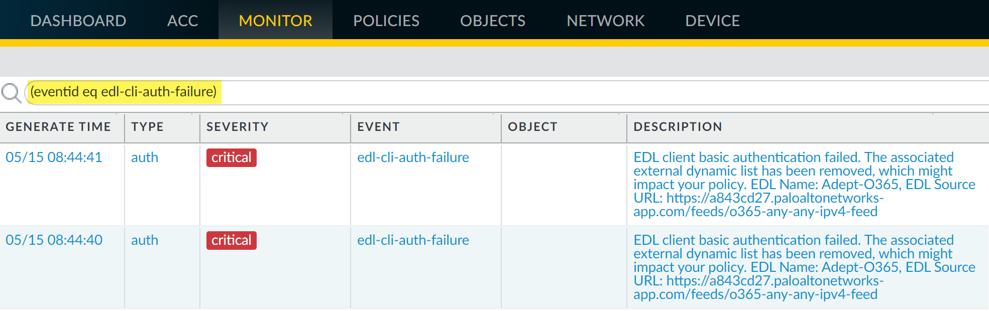 Find External Dynamic Lists That Failed Authentication (PAN-OS & Panorama)