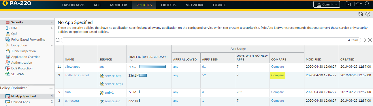 1. Navigate to PoliciesSecurityPolicy OptimizerNo App Specified to view the port-based rules.